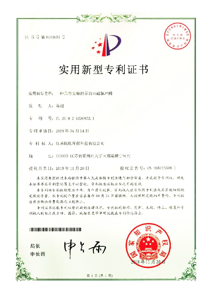 實用新型專利證書