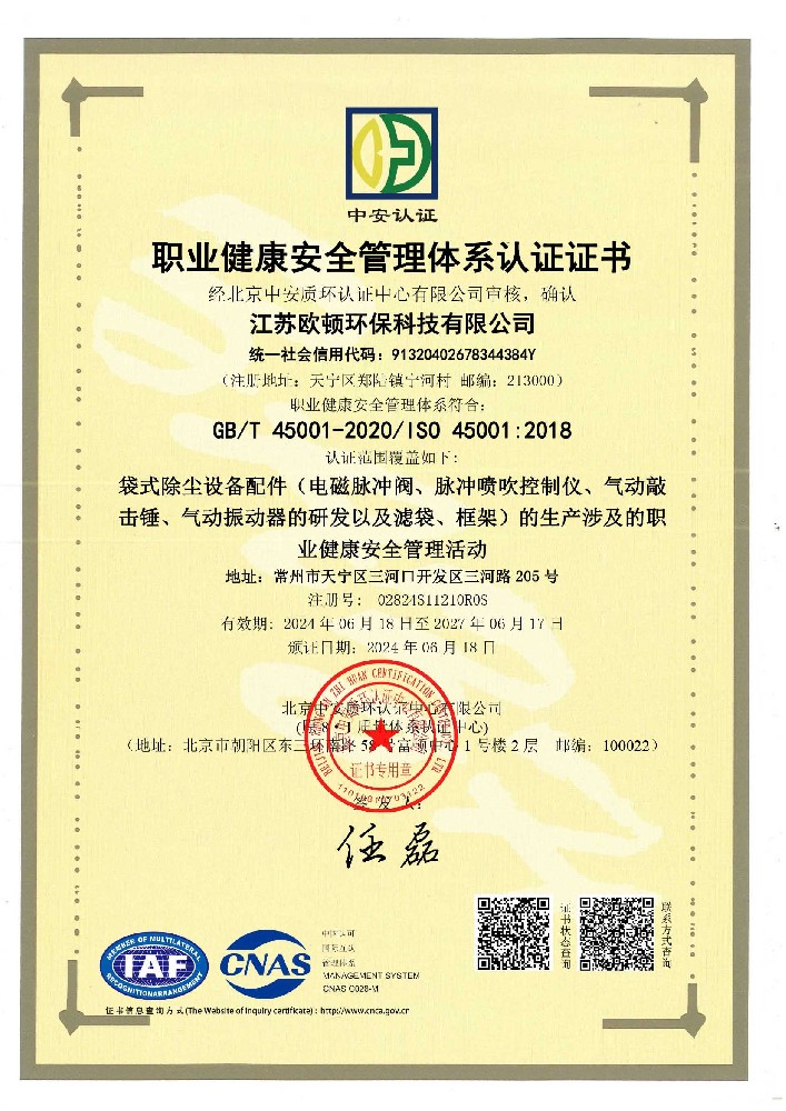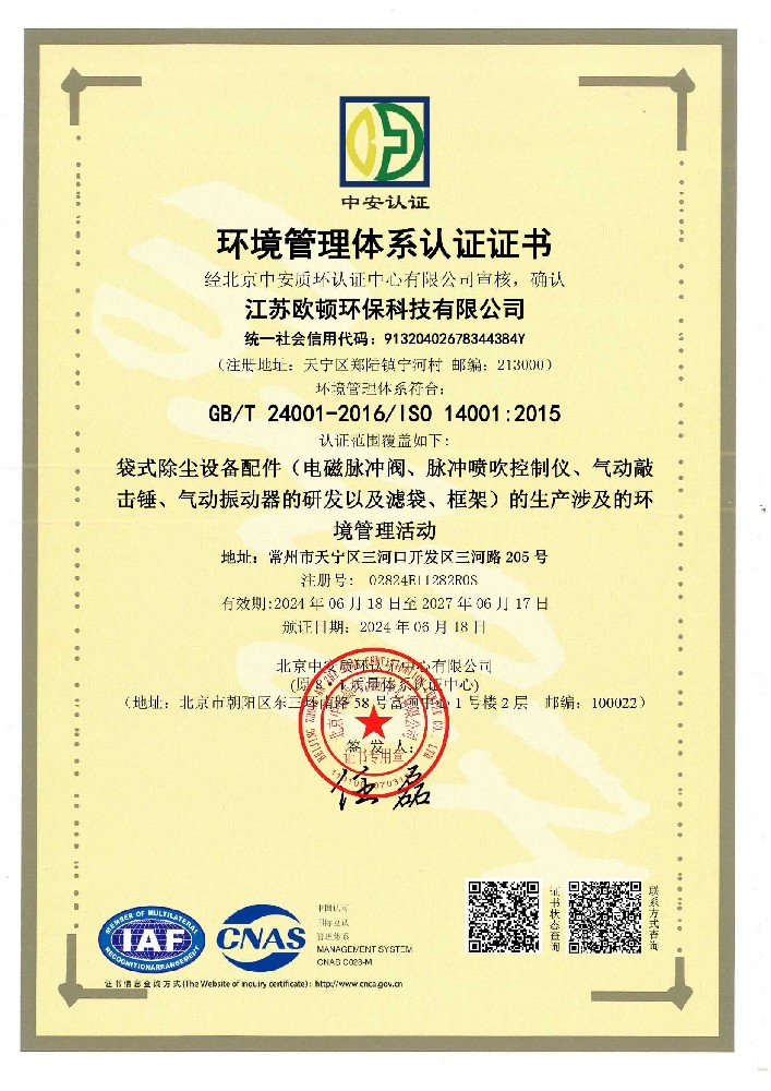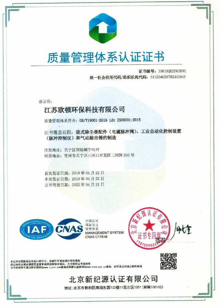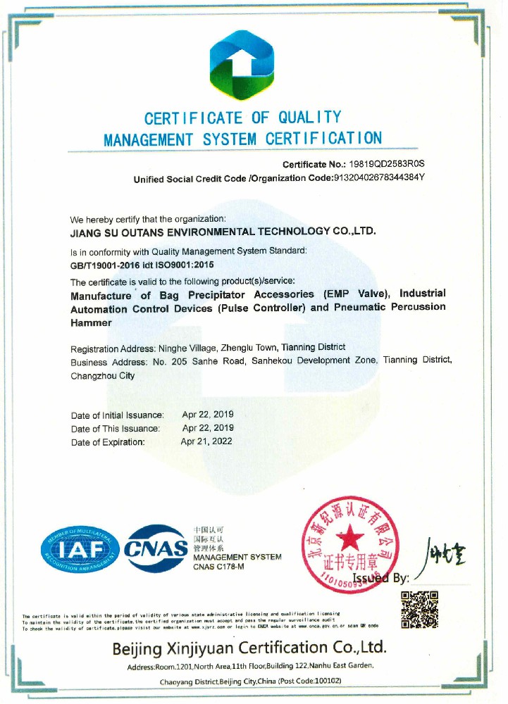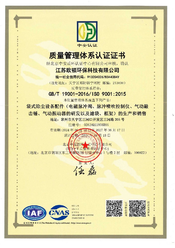 質量管理體系認證證書